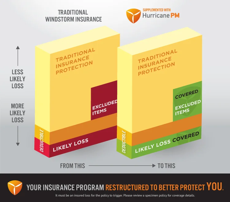First dollar Windstorm Coverage for items either not covered by, or below traditional insurance deductibles